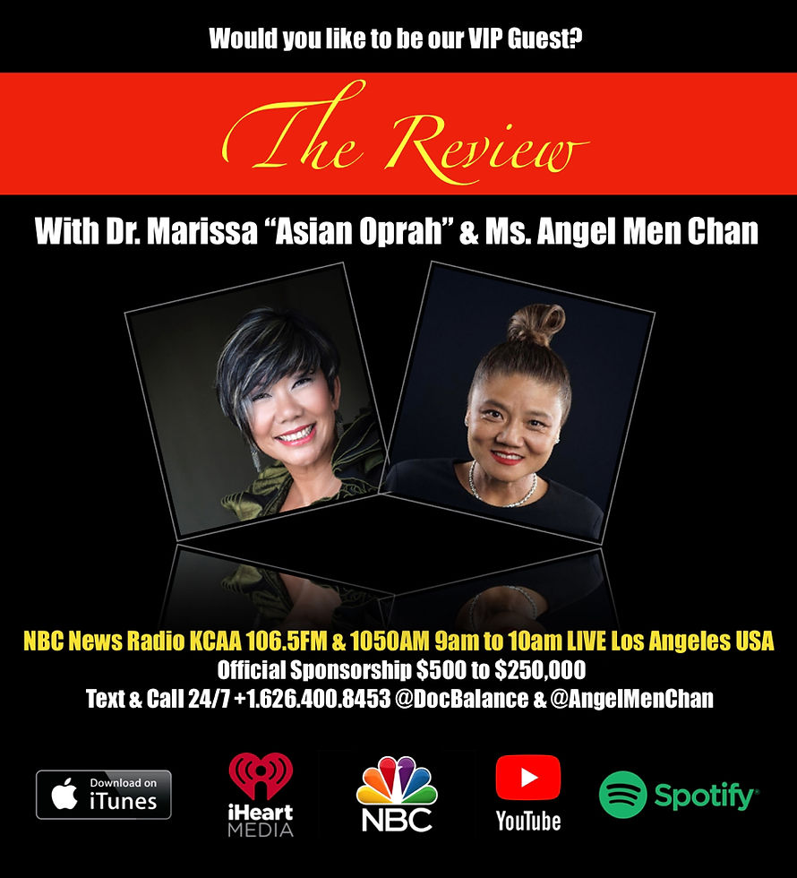 Dr. Marissa Pei is set to launch a new Friday series to commentate her 12 years on radio & TV formally Friday, May 3, 2024 - aptly named “THE REVIEW” on the number one rated NBC/CNBC News Radio station KCAA AM 1050 FM 106.5. Co-Hosted by Ms. Angel Men Chan - along with Ricky Rebel and Eddie Barber, the show will be available for streaming on platforms such as IHeart Media, Spotify, iTunes, Amazon Music, YouTubeTV, and more than 30 other platforms globally. This new series will mark a significant milestone for Dr. Marissa Pei, as her award-winning show “TAKE MY ADVICE I’M NOT USING IT: GET BALANCED WITH DR. MARISSA” has been on the air and on camera for an impressive 623 consecutive weeks. With this new venture, she will celebrate 12 years of inspiring and empowering audiences with her message of balance and positivity.